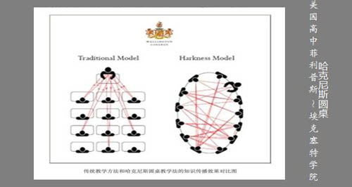 就是这样一种课桌的重新设计,带来了课堂教学的一系列变化,并最终形成了著名的“哈克尼斯式”教学法。